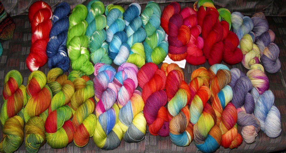wie angekündigt Bilder von dem handgefärbten Sockengarn welches aus Wallau mit ins Lädchen ziehen durfte.